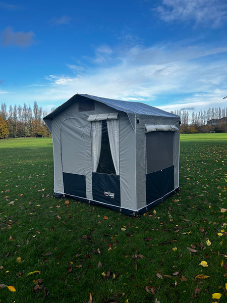 You can set this up to store all your kitchen supplies and equipment. It can also provide extra storage space or can be made into an area to sit back and relax in. The Ascot Utility Tent/Storage Shelter is manufactured in PVC fabric making this weather resistant and includes a living space of 250cm width by 200cm depth. Another feature is that the Ascot Utility Tent/Storage Shelter includes a fly screen on the side and rear to allow for breathability and ventilation inside the shelter. You can also roll down the external blinds to create privacy when away or to create shade on those sunnier days.