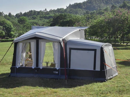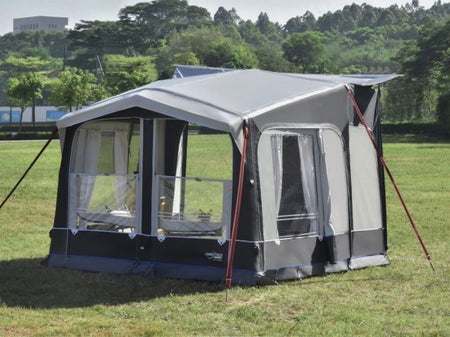 Ventilation comes from the two full mesh side doors and the front apex of the awning. The Moto Windsor has the option to remove the front and side panels to create a canopy space.