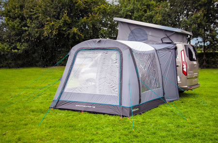 The fabric incorporates a 3,000mm Hydrostatic Head and employs fully taped seams throughout, meaning it is exceptionally waterproof and rain will simply bead onto the surface, before rolling off. The sleek design lines & natural tri-colour livery with new teal highlights will coordinate & complement any campervan or motorhome.