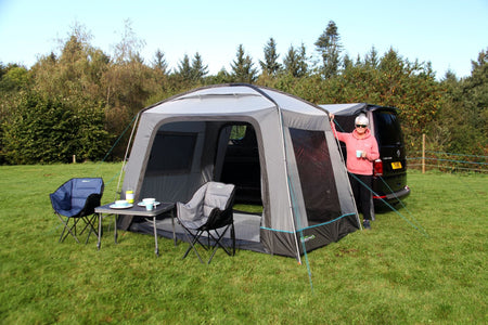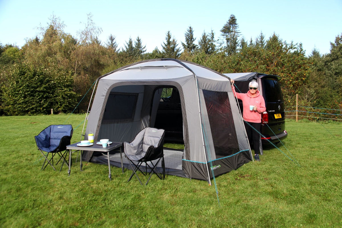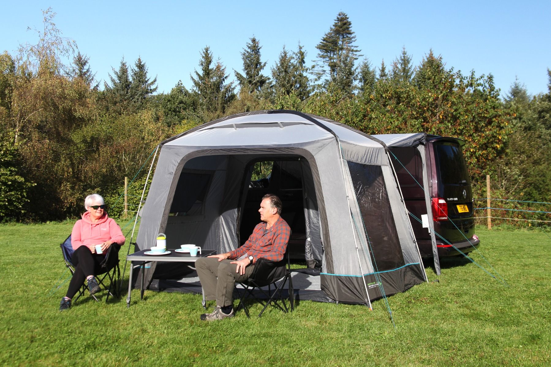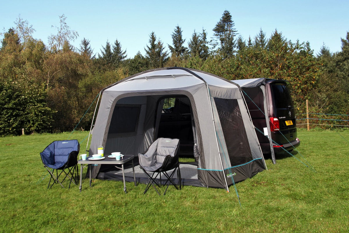 The extremely manageable pack size means that it is simple to find space to pack it away in the van, yet the enclosed usable space it provides is a perfect setup for table and chairs, and even room to store your gear.