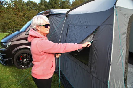 The Cayman Cuda F/G is a small yet practical drive-away awning offering enough space for a small family or couple. This utility awning provides ample storage or seating, alleviating clutter in your campervan.