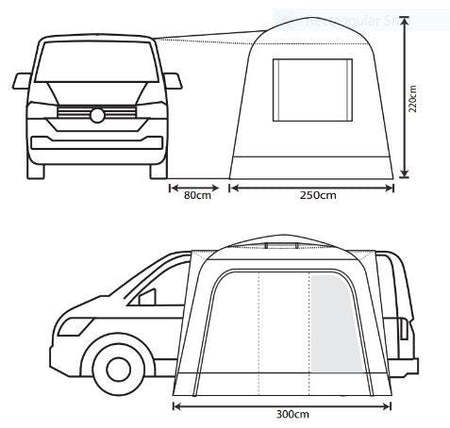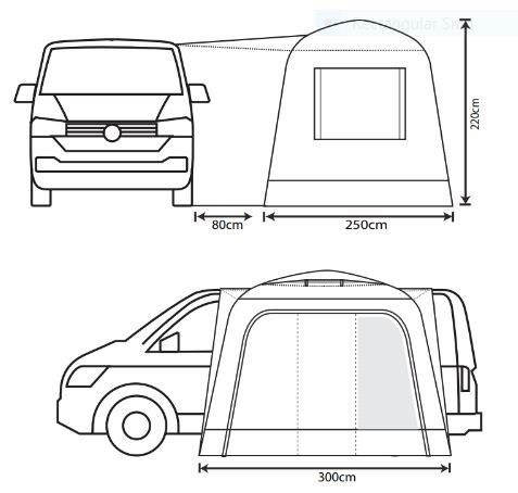 Footprint 300 x 250cm (+ 80cm cowl depth)