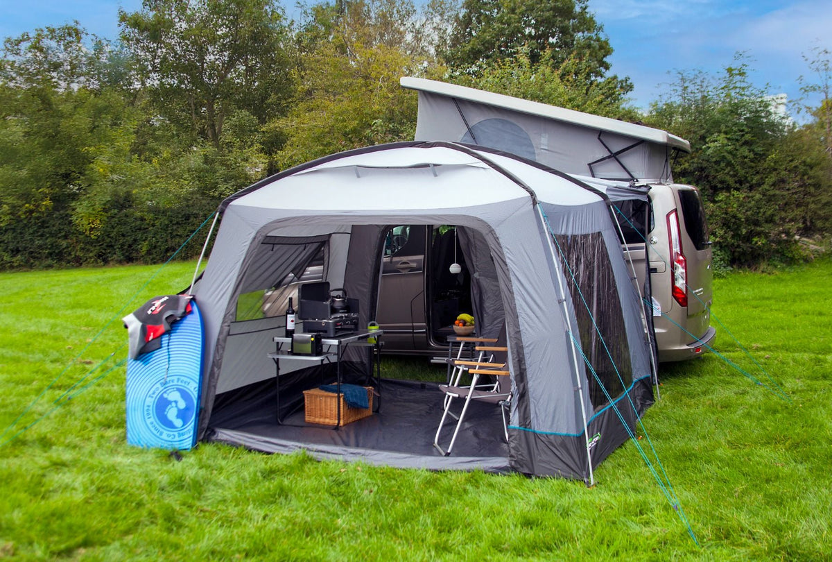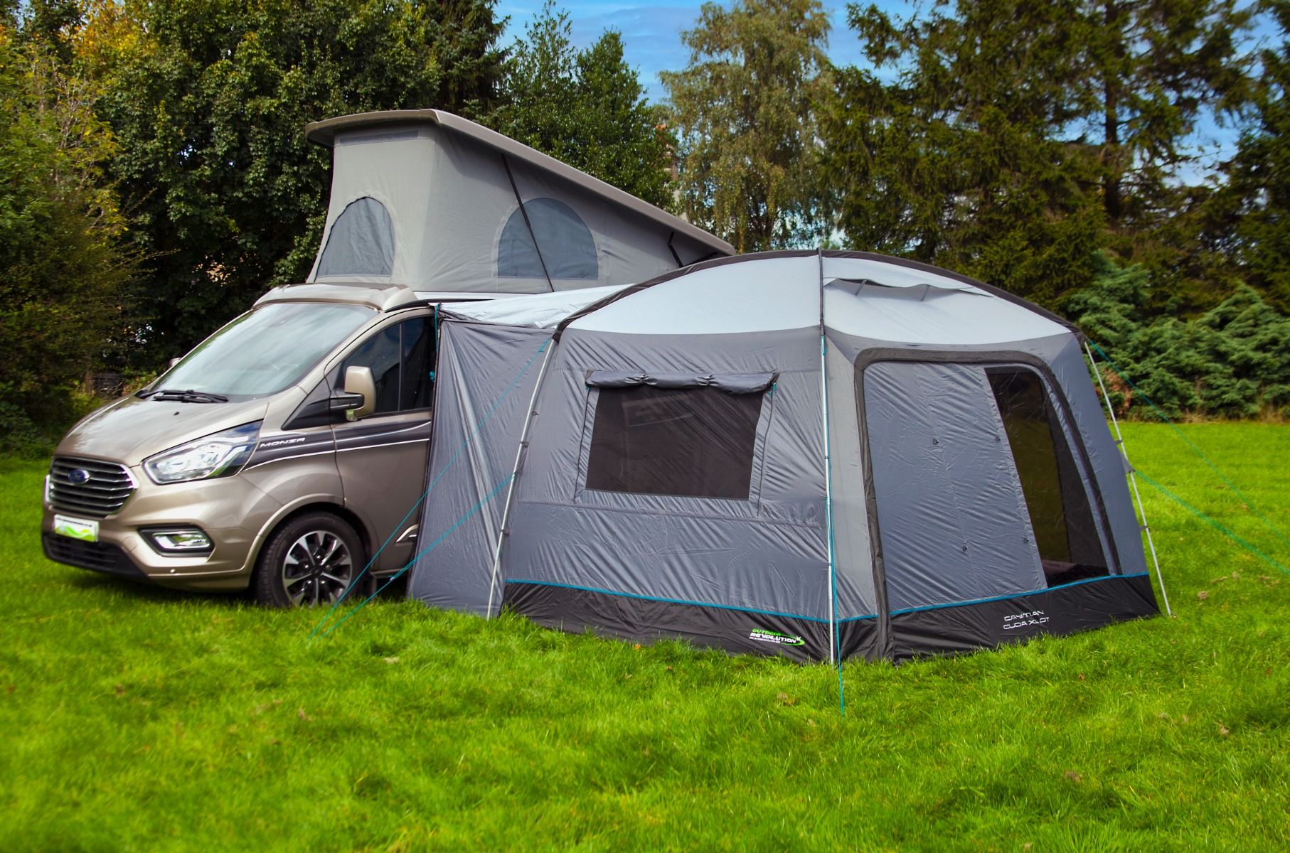 Constructed from our trusted lightweight 120HDE high density technical fabric with options in both air frame & traditional fibreglass frames, the Cayman models carry an air of understated confidence with sleek design lines & classic tri colour livery to coordinate & complement any campervan or motorhome. The 2025 Cayman family, more than just a driveaway awning!