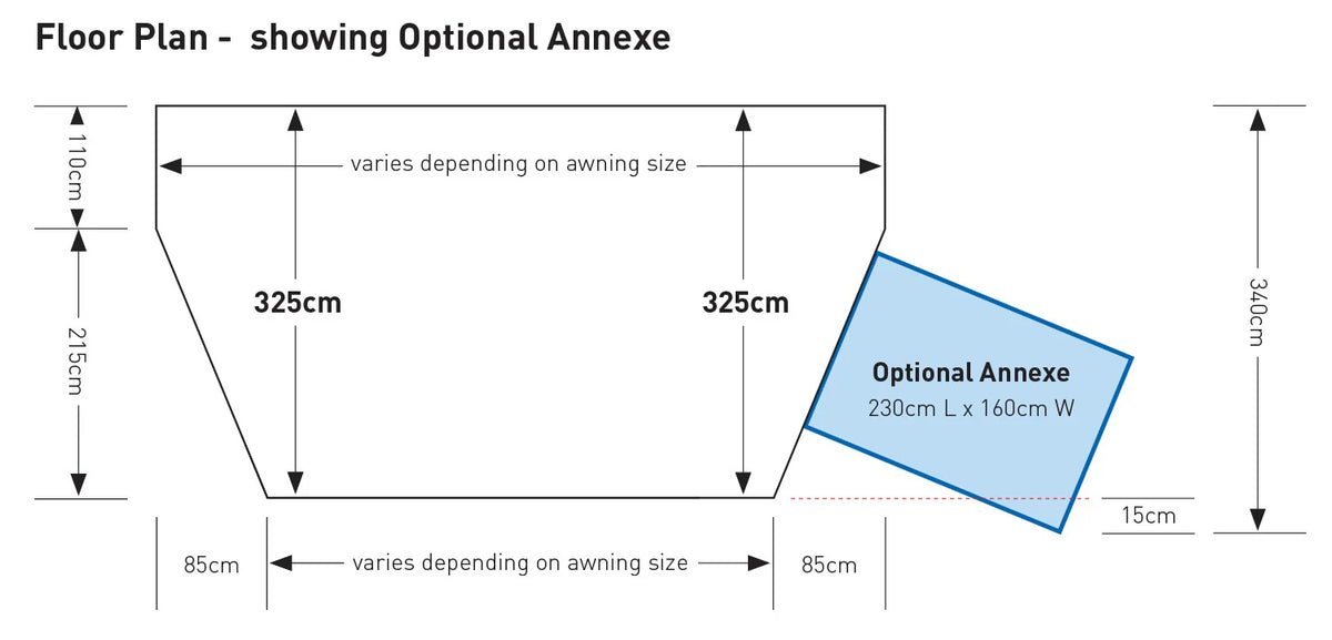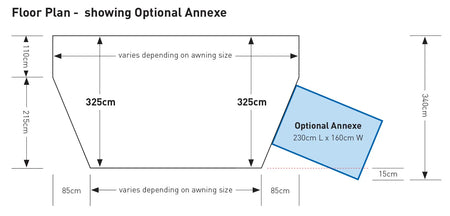 SunnCamp's ICON Air full touring, single inflation awning, with a depth of 325cm.