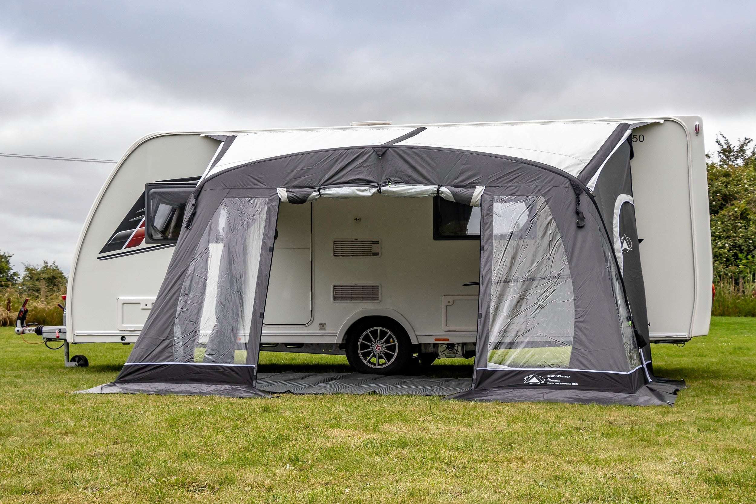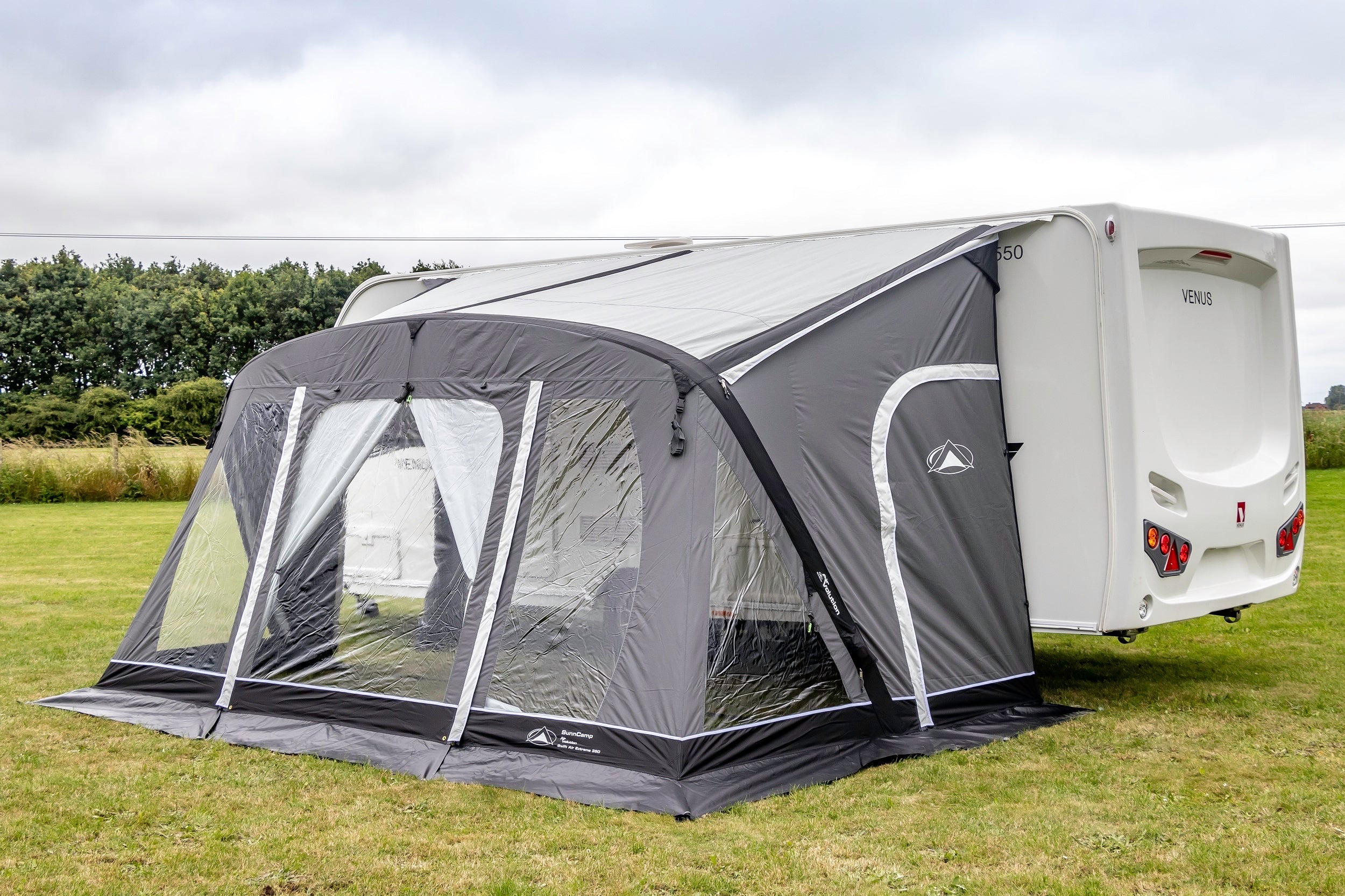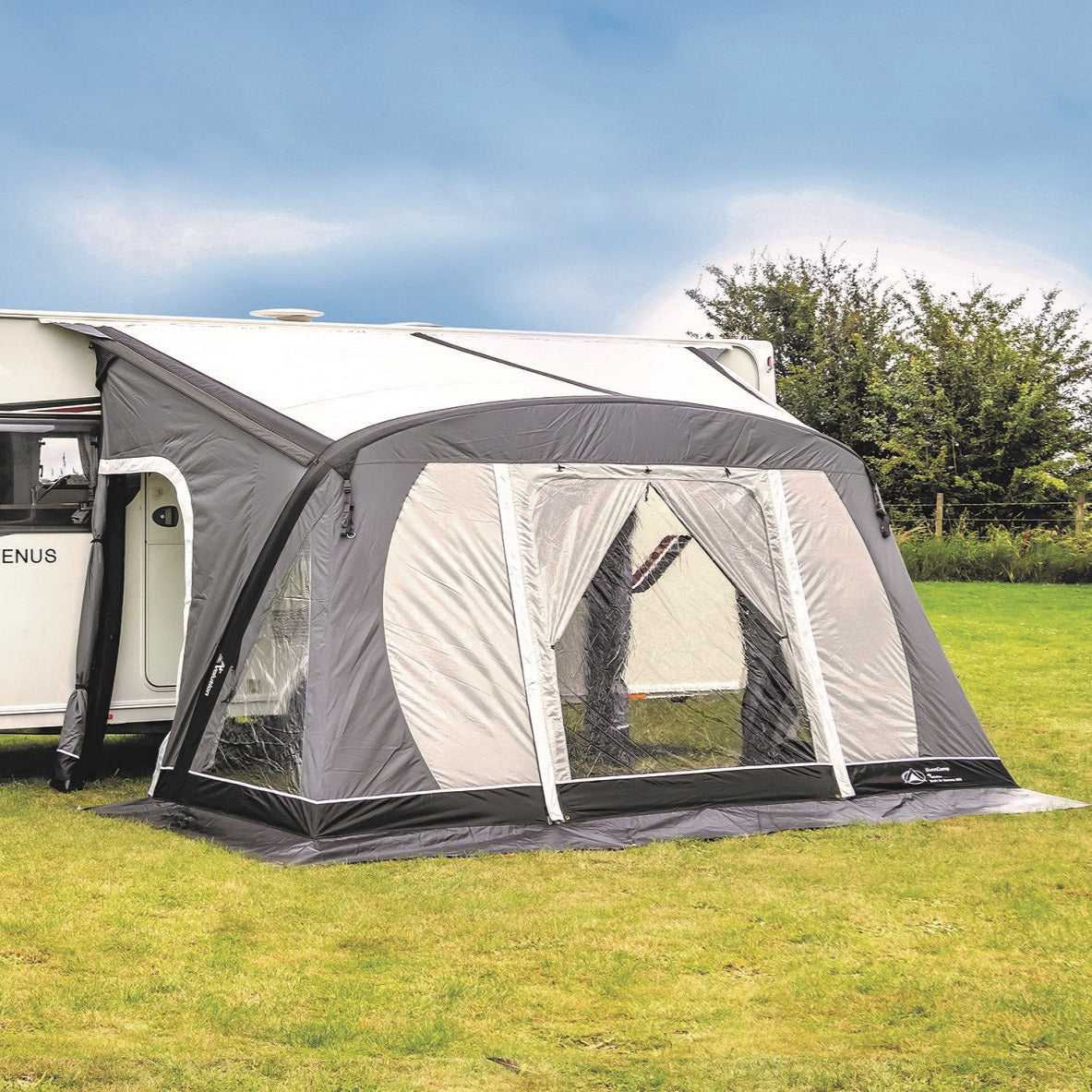 The SWIFT AIR EXTREME porch awnings have been designed and created based on our Swift Air awnings but are manufactured using our Air Volution SINGLE INFLATION technology and our 300D PRO-TEK fabric with a PVC mesh external peggable mud wall for extra weather protection.