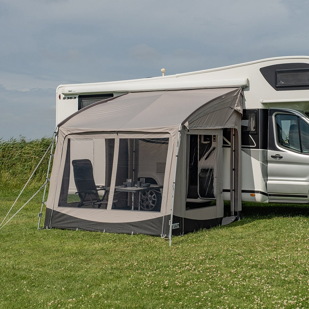 Removable front and side panels offer flexibility and ventilation, while the clean design ensures a great fit for caravans & motorhomes alike with Telta's adaptive height feature.