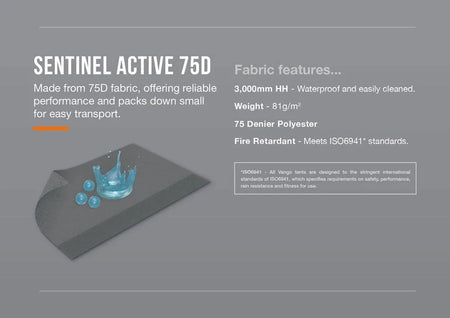 - Sentinel Active 75D - Lightweight, compact and waterproof. 75D fabric with an HH rating of 3,000MM.