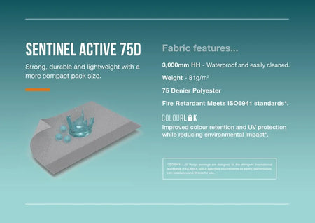 - Sentinel Active 75D - Lightweight, compact and waterproof. 75D fabric with an HH rating of 3,000MM.