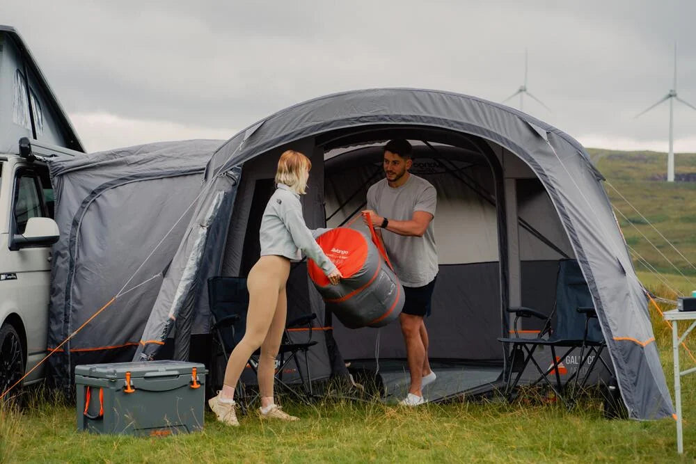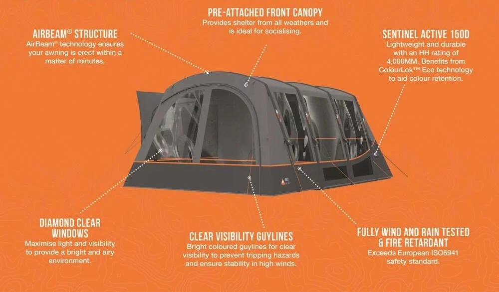 - Inflatable AirBeam Structure - With 10 years’ experience in AirBeam technology, we are the leaders in pole free pitching. AirBeam technology ensures your awning is erect within a matter of minutes (supplied with AirBeam pump)